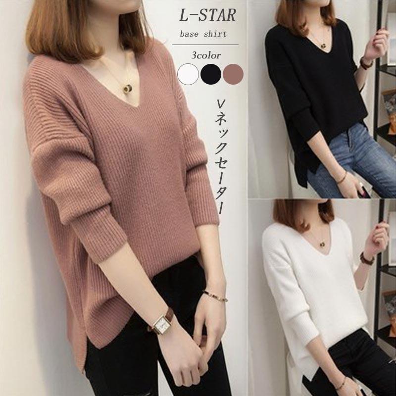 どんなコーデにもピッタリ Vネック リブニット ニット セーター Vネック リブ レディース トップス L Happy急便 ハッピーキュウビン ファッション通販リュリュモール Ryuryumall